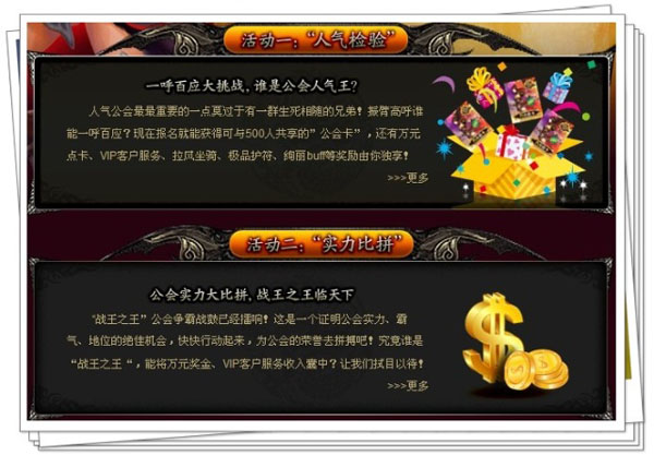 倍受关注的《刀剑英雄》年度资料片“战王之王”即将在本周五与广大玩家正式见面了。正如其名所言,“战王之王”充满了玩家间的竞争和对抗。高手与高手间的对决,公会与公会间的较量将成为主流。近日,知名的起点公会会长天一接受了《刀剑英雄》官方特派记者的采访,成为“战王之王公会争霸赛”的有力竞争者正是他们的头号目标: 公会争霸赛分为人气和实力两大板块 《刀剑英雄》玩家记者站特派记者记 者:恋恋 目标人物:天一 (男 28岁) 现任职务:起点公会会长 500入驻战王之王 恋恋:您好,看到论坛茶楼里公会招募人员的帖子我就来了,谢谢您愿意接受本次采访。 天一:恩,呵呵,大家的积极性都蛮好的,这游戏招募500人我感觉还是有把握。 恋恋:500……厉害……很好奇,起点公会以前好像凭空出现一样就那么突的一下跳到每个稻米的眼前来了,一点准备都没有,对你们也完全不了解,能讲讲你们吗? 天一:你是不是要先摸清我底细啊?呵呵。 恋恋:哈哈,我也是慕名粉丝,来满足好奇心的。 天一:起点公会成立于2009年04月01日,是一家综合性网游公会。是由一群多年在网络游戏中拼搏的玩家,多年供职于各大媒体和公会的官员、骨干自发组成的泛网游玩家群体。 恋恋:这么说,你们是一个团队了?论坛里关于起点的那些资历描述都是真的了? 天一:嗯是的。我们是由爱好网游的玩家自发组织起来的玩家群体,我们有自己的网站论坛,力争打造最正规化、专业化、规模化和商业化的网游公会。 恋恋:起点公会与搜狐是从刀剑建立起的合作关系吗 天一:我们和搜狐畅游合作已经很久了,一直以来合作的都不错。最近我们起点公会刚刚被搜狐畅游评为《最佳合作公会》,要接受搜狐颁发的《最佳合作公会奖》哦。 畅游旗下的几款大作我们也都有进驻,这也是本次决定进驻《刀剑英雄》的原因之一! 恋恋:那这次与搜狐畅游合作主要是因为? 天一:《刀剑英雄》这款游戏的进驻主要还是玩家所需,同时对推广起点公会能起到积极的作用。何乐而不为呢。这款游戏人气比较高,我们是不会错过的。呵呵。