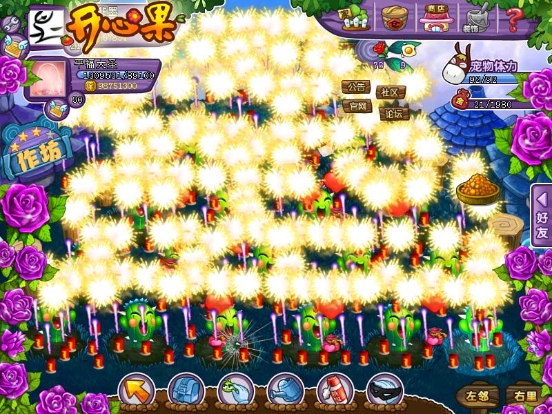装点果园——百变装饰 咱们辛苦栽培、到处偷菜是为了什么?一个更大、更漂亮,更……什么什么的果园肯定是目标之一!所以对果园的装饰也不能少。在作坊的“百变装饰”一栏里,有着《开心果》几乎所有出现过的装饰,像经典的烟花、爱心包,广受欢迎的爱情边框、白天远景,还有从未出现的心心相印烟花。有了这些,还怕果园不好看吗? 浪漫果园一手打造 亲爱的玩家,即使在果园里,想要玩的开心,也要努力一番哦。和现实的不同的是,进入《开心果》,付出就一定有收获。还等什么呢?我们一起来《开心果》享受奋斗的乐趣吧! 关于《开心果》: 《开心果》是国内第一款桌面社交游戏,是由火石软件自主研发的一款Q版风格的,2D类型休闲游戏,拥有超精美画面,超可爱水果和免费模式。超小客户端,一分钟内完成下载。赶紧带上您的好朋友,每天5分钟,无负担享受开心体验! 最受玩家肯定的四大玩法包括:偷菜捡钱、爆笑宠物、个性水果、魔幻作坊。在《开心果》里面,每一个水果和宠物,都能让您充满惊喜、爱不释手。 7月15日,《开心果》全新作坊系统开启测试,敬请体验更多精彩! [编辑:灰色] |