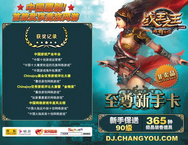 战王之王火爆公测,注册就有至尊新手卡满载极品,助你惬意游戏 靠升级来抽奖,新服战王冲级赛 为迎接“战王之王”热血公测,满载30万大奖回馈的“夺宝奇兵—战王冲级赛”随着资料片正式开启!只要注册帐号,加入到两组最新服务器中,就能成为“战王冲级大赛”的有力竞争者! 注册后只要您在游戏中的等级不断提升,就会有更多的奖金储存在为您专门设定的“英雄宝库”当中。您不仅有极大的机会赢取话费奖励,更有机会将每天一个的数码大奖收入囊中,在获得《刀剑英雄》“战王之王”带来的竞技快感的同时,还能将PS3、iPad、Wii等时尚数码好礼一并抱回家!