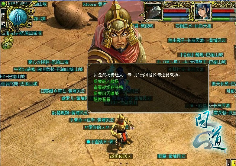 《问道》第一届跨服联赛火热进行中,8月1日开启的跨服战,使得楼兰古城烽烟四起。百万玩家相聚楼兰古城,同服PK同场竞技,争霸跨服战场。 百万《问道》玩家 同服PK 《问道》经过不断地成长,在光宇游戏和玩家的共同努力下已经成长为百万玩家同时在线的顶级2D回合网游。本次跨服战是一次《问道》百万玩家的同服PK赛,无区组的限制大大增加了PK赛的激烈程度,玩家可以进入楼兰战场与其他区组的玩家进行PK。百万玩家,众多高手,跨服争霸,同服PK。 《问道》百万玩家可以从战场传送人处进入跨服战场
