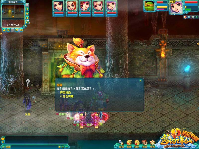 迷宫新奇探险流程说明 1、迷宫探险位于蛮荒地图中,玩家需要从巨龙之穴入口进入,然后前往迷宫探险的所在区域——龙穴深处。 3、在迷宫中,玩家不仅可以得到多种奇珍异宝,还可以获得“米族友好度”,兑换珍贵物品。 4、玩家在迷宫深处可以挑战“地底统治者”,战胜后有几率获得法宝“伤心花”以及VIP周卡。 5、与此同时,击败地底统治者后,将会在迷宫随机角落出现宝物盒子,玩家拾取后可获得稀有物品。 “米族友好度”兑换真贵物品
