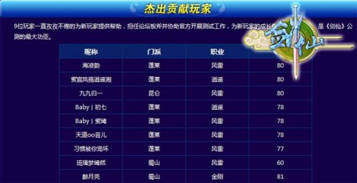 【公测预告版整装待发】 自8月5日《剑仙》不删档完整内测开启以来,有无数玩家从不同渠道为游戏的继续完善提出了宝贵建议。而研发团队也根据玩家建议,对游戏内容进行了相应修改,例如,对美术资源进行了添加与替换,更改了生活技能与战斗技能的部分设置,使之更合理,添加了新的战斗技能,UI显示等细节也更加人性化。 经过考虑,研发团队决定于24日开放《剑仙》公测预告版体验新服:电信一区“南斗星廊”,酌情放出部分公测内容,接受广大玩家的检验! 杰出玩家策划将由心如亲自颁奖