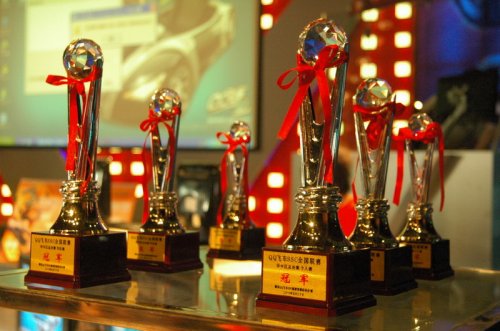 武汉站——电竞场馆,设备专业 武汉站的个人赛玩家报名人数有16万,车队赛玩家报名人数在55万左右。本场比赛在武汉市专业的电子竞技广场进行,选手们使用的隔音竞技台完全按照韩国专业竞技赛事的竞技台设计,该场地曾接受过韩国电竞协会会长、中国体育总局领导的参观和好评。这一战,我们一同见证了湖北车神的荣耀诞生,一同见识了车队战友的兄弟情深,一起感受了歌者及舞者在漂移比赛中带给我们的精彩而难忘的表演。 图五 SSC武汉站金灿灿的奖杯