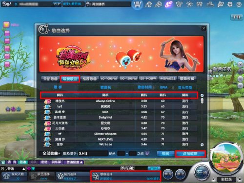 今天我就听新歌! 好啦,不卖关子啦,我们进入正题!打开歌曲选择界面后,在下方输入框中输入你最钟情的那个明星的名字,按下回车键,即可将曲库中所有该歌星的歌曲都调出来。然后,再点击界面中部的“随机”一行,选中它之后点击右下角的“选择歌曲”按钮,我们就大功告成啦!这样的设置就可以实现随机播放该明星的所有歌曲咯!