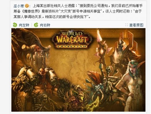尽管已经确定8月底国服《魔兽世界》新资料片《巫妖王之怒》一定会开放,但是相比外服玩家已经可以玩上《大灾变》,许多国服玩家还是充满了遗憾。当然,也有玩家对此并不在乎,因为一个TBC就玩了3年,WLK至少也得玩一年以上才能体验完吧。不过最近有人爆料,据说已经有上海版署内部人士称已经开始筹备《魔兽世界:大灾变》的审批,而且由于“某部”人事调动,这次审批将很快通过! 《大灾变》背景 艾泽拉斯大灾变发生的时候,玩家们正在诺森德奋战巫妖王。等到玩家们重返艾泽拉斯大陆的时候,发现他们的家园已经彻底改变。 资料片讲述了受神器恶魔之魂影响的黑龙死亡之翼(Deathwing,奥尼克西娅和奈法利安的父亲)趁着英雄远征诺森德时唤醒了被泰坦封印的上古元素领主,巨大的灾难降临到艾泽拉斯大陆上,整块大陆都改变了外貌。归来的玩家将拿起武器,远征元素位面,最后将直面可怕的死亡之翼本身。