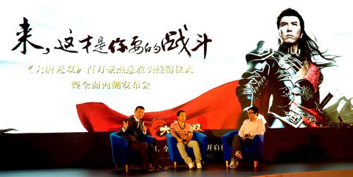 他是新一代功夫之王,一路过关斩将,越战越勇,五年三夺金像奖最佳动作指导,其甄氏功夫更是深入人心; 他是国内最有影响的互联网公司的创始人,十年时间将网易发展成为中国领先的互联网公司,并在网络游戏行业占领不可动摇的龙头地位。 他们就是甄子丹和丁磊。 8月20日,网易2.5D武侠精品PK网游《大唐无双》在京召开了发布会,丁磊、甄子丹“双雄”首度聚首。