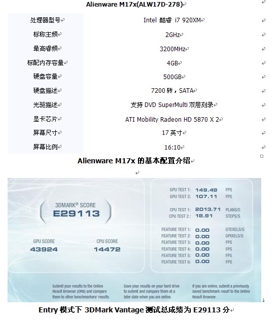 E29113分是这款机器在3DMark Vantage下的测试成绩,对于普通级别的笔记本来说,3DMark Vantage能够超过10000分就已经很不错了,而我们看到这款Alienware M17x已经接近了30000分,恐怕普通桌面级显卡也很难达到这样的程度。 总结: 对于笔记本产品来说,其价值的体现不仅仅在于性能配置上,而更在于产品本身的结构设计方面。对于大多数厂商来说,把笔记本的配置做高并不难,但要想把笔记本整体设计做好就不是那么容易了。对于使用者来说,配置高的笔记本只能说明玩游戏不卡,而玩游戏时产品给自己带来的全方位的体验才是更加重要的。对于Alienware这种机器来说,能够给用户带来更加震撼的使用体验才是其产品精髓所在。用Alienware M17x玩《星际争霸2》时,逼真的视觉体验、强大的听觉冲击、舒适的触觉操作,Alienware M17x在为你每一根神经服务着。 现在消费者只需通过戴尔直销电话400-889-7244或登录戴尔官方网站(www.dell.com.cn/alienware)的Alienware直销页面,即可获得最快捷、权威、全面的产品信息支持。 [编辑:夏日朦胧心] |