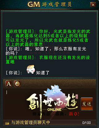 亲切诚恳,与GM如“朋友”般互动交流 玩家全程与GM一对一交互,并非“生硬”的系统回复,除了游戏内的常见问题,甚至连一些在游戏内遇到的不明白之处,如怎么升级比较快等问题都能与GM一一对话,尽力做到真实感和亲切感。 接到GM的回复