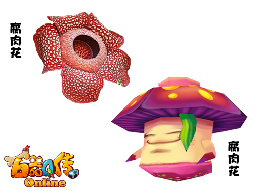童颜巨变,艳丽无双,老祖先是朵花,而我现在已经像个蘑菇啦~ 史前腐肉花VS石器腐肉花 腐肉花号称尸王花魁,整天带着花蘑菇帽子在赞菲尔沼泽晃悠,不时散发着腐肉的味道,似乎在警告大家“我可是有毒的,不怕死的你就吃吃看!”不过它们也是外强中干的突出代表,貌似强大的绚丽外表下是脆弱易碎的身躯,如果你已经成长为骁勇善战的小野人,那腐肉花对你来说简直是不堪一击,它只有跪在地上唱征服的份啦。 宠宠格言:再看我,再看我就把你吃掉! 出没地点:赞菲尔沼泽 外观相似度:★★
