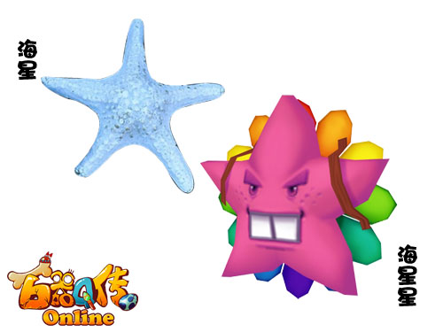 奇幻之章 兽语添奇——《石器Q传》兽族宠宠 有人说我像石器版的凤姐,肯定是她山寨我,俺这模样可是从史前就有了! 海星VS海星星 没人会怀疑海星星与老祖先海星的血缘关系,此外,色彩缤纷的海底精灵还是个彻头彻尾的胆小鬼,只要稍有风吹草动,海星星就会背起七色花伞第一时间落荒而逃。虽然基本谈不上有什么战斗力,海星星非常重口味的长相的确让人想忘记都难。 宠宠格言:龅牙挡不住我的美。 出没地点:黄金海岸 外观相似度:★★★★