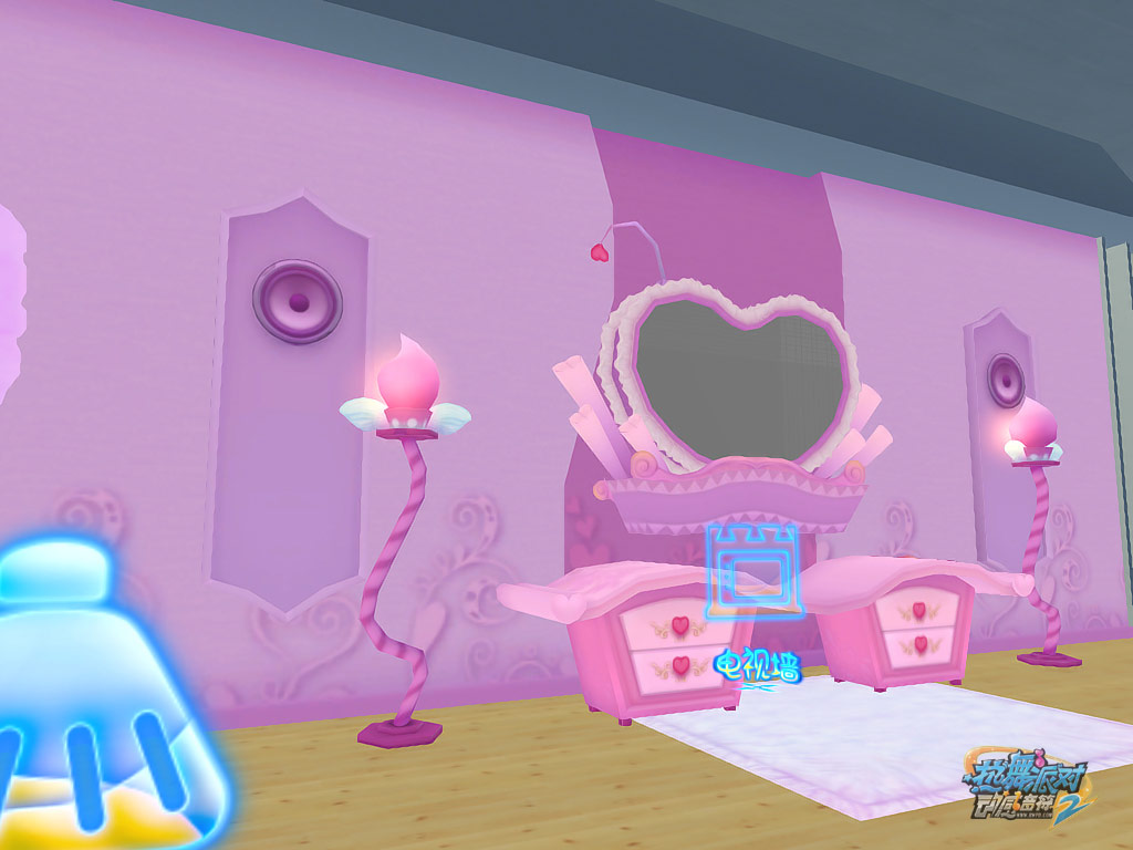 超可爱电视墙展现公主范儿 甜蜜心情家居套装是一套透着浓浓甜蜜气质的粉色家居套装,包含了双人床、地灯、窗帘、沙发等家具。这套家具玩家可以整套使用,将爱巢装扮成极其甜美的粉色地带,也可以跟其它套系的家具共同使用,搭配出各种不同的家居风格呢!