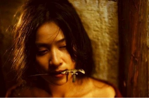 桃花——刘嘉玲 虽然刘嘉玲说自己当年并不明白为什么王家卫只给了自己一匹马,然后就让自己演,但是这场戏拍得却是那样的暧昧动人。水波反射出的光影在桃花的脸上、手上流转,接下来是那只白嫩的脚部特写,然后慢慢往上是白而修长的腿,一切都充满了情欲的味道。她交叉在马脖子下面的双手,有意无意地透露出她心中的某种思念和渴望。“轻薄桃花逐水流”,人是很容易生出一点暧昧之情和非分之想的,桃花对黄药师的“移情别恋”可能只是一种惺惺相惜的怦然心动,而盲武士梁朝伟才是她愿意相依相守的心上人。多年以来,刘嘉玲灯红酒绿绯闻不断,但最终他还是成为了她的归宿。“天涯若比邻,海内传八卦”,十九年前,他们在香港相爱,十九年后,他们在不丹结婚,但是关于他们的情事,我们却熟悉的仿佛如同隔壁邻居一般,哪天又吵架了,哪天又和好了,如数家珍。本该是最为私密的爱情,却被曝光在大众的目光之下,身为娱乐圈最知名的公众人物,在这个没有童话的世界里,既没有水晶鞋可穿,也没有归隐田园的可能,他们只有继续在演艺圈服务,没有童话还可以制造传奇。 刘嘉玲