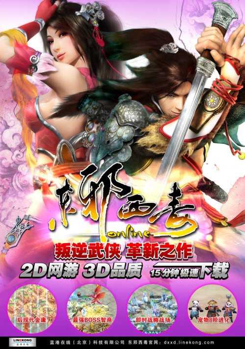 只有这样的电影,在时隔十五年之后再次上映,依然会成为媒体的宠儿;只有这样的电影,会在无数个夜晚被翻出来重新观看,触摸那些刻骨的悲凉;只有这样的电影,会成为王晶、刘镇伟等人的最爱,其后许多的喜剧电影都不断地用它里面富有哲理的对白来搞笑,其影响力可见一斑。一部电影,只有在精雕细琢之下才会焕发出别样的光彩,游戏也同样如是。由蓝港在线火狼工作室耗时三年打造的《东邪西毒》同名网游,与电影一脉相承,是近年来武侠网游中难得一见的诚意之作。桃花岛的一潭碧波,白驼山的一抹黄沙,丐帮总坛古道热肠的一腔热血,全真教派山高水长的一缕道骨仙风。《东邪西毒》中独具深意的武侠风骨在游戏中得以延续,而当我在游戏中快意恩仇,啸傲江湖的时候,眼前的一个个NPC仿佛幻化成电影里那些熟悉的风流人物,向我走来…… 东邪西毒海报