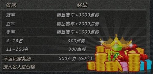 每周之星奖项设置 比赛结束后将分别选出电信/网通/电信二区的冠、亚、季军得主,给与奖励。如果出现多名选手积分相同的情况,先获得该积分的玩家成绩排名高于后获得该积分的玩家成绩。《QQ飞车》紫钻贵族再显尊贵特权,可获得当前积分加成20%的奖励。紫钻贵族加成的效果可以在开通紫钻第二天中午12点之后,从赛事页面上查询到。