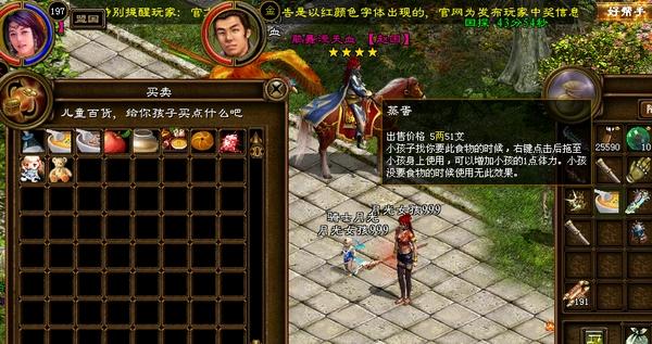 “爱情就是受累,幸福就是遭罪”,这是哪位前辈高人的名言我也记不清了。不过现在看来,这句话也不尽然全对吧! 这不,《征途》里咱们玩家的孩子就是个很好的证明!《征途》里的孩子,吃得好,穿得好,玩得更好,这么幸福却也没见要遭什么罪啊! 一、 营养套餐助孩子快乐成长 营养套餐 《征途》的里“工资”是涨了又涨,玩家们早已达到“小康”生活了不是,出生在这个年代的孩子怎能不享福呢?看看孩子们吃的吧——牛奶,要新鲜的;蛋糕,要色香味俱佳的,哈哈,还有八宝粥、蜜糖、曲奇饼等,有这样丰盛的美食搭配,《征途》的孩子们肯定个个身体都是顶呱呱的棒! 想当初,咱们可是吃糠咽菜长大的……还真是羡慕《征途》里的孩子啊!