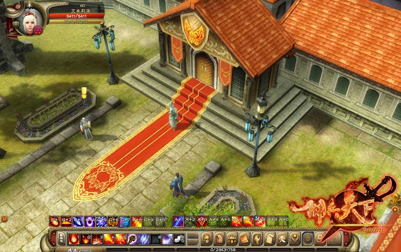 艾米风格 故人相逢 忠奸善恶自分明 作为艾米帝国的都城,在小说中占据极重分量的史坎布雷在游戏中同样是庄严宏伟,一派王者气象。此时,正值大战前夕,史坎布雷尚是风平浪静,街道之上零零散散有几个巡逻的士兵,气氛祥和。皇宫之中,更有故人相逢,小说中的英明君主红石大帝立在当中,尚未揭穿真实面目的右相特拉华作为天子近臣,侍立在旁。红石大帝身材高大,不怒自威,身着华丽高贵的皇宫服饰,尽显气势威严的皇家风范。外表虽然看似冷峻,但心存善意,是一位仁义君主。坐拥大陆最强帝国的他,正值壮年,有着一颗胸怀天下的君主之心。旁边的帝国权臣,右相特拉华乃是世袭贵族出身,外表英俊,两鬓斑白,眼神凌厉,目带寒光,外表看似谦和,但内心其实十分阴暗,为了替子报仇,不惜勾结敌对势力,出卖艾米帝国。除此二人之外,小说中人气最高的京畿防卫最高长官池寒枫;艾米帝国元帅池家家主池大同;以及大器晚成的高阶大魔法导师雷葛等人,都将随着游戏剧情的不断发展,出现在史坎布雷城中,与玩家并肩作战,浴血杀敌!