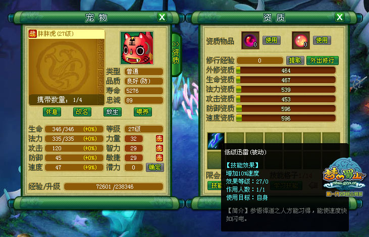《梦幻蜀山》强力宠物外修 主人经验滚滚来