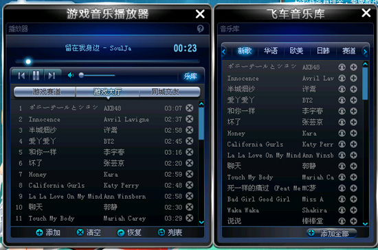 音乐阐述内心的情感,写意最美丽的爱恋!《QQ飞车》新版本【影子传说】音乐涉及曲风多样,新歌不断,好歌不断,就等你来! 飞车音乐播放界面