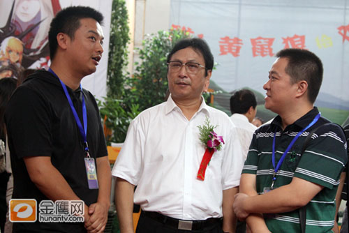 9月9日上午, 湖南首次针对动漫游戏爱好者举办的一次大型行业盛会——2010湖南动漫游戏展在湖南省展览馆隆重开幕,省政协副主席魏文彬、省委宣传部副部长蒋祖烜、湖南广播电视台党委书记、台长欧阳常林等领导出席开幕式。 此次展会吸引了来自全国各地110家动漫游戏企业携产品前来参展。作为湖南游戏行业的一枝独秀,湖南省首款大型网络游戏《网球宝贝》在家门口亮相,成为了本次展会上最受关注的焦点。刚刚参加完开幕式的湖南省政协副主席魏文彬更是饶有兴致地来到了一群年轻人中间,亲自动手体验。 魏文彬(中)和张若波(左)、柳超(右) 据悉,本次展会为湖南举办的首届动漫游戏展览,受到了业内外的普遍关注。而作为湖南卫视进军网游领域推出的首款网游,芒果游戏出品的《网球宝贝》受到的关注程度更可见一斑,展会现场围满了跃跃欲试的体验者。 开幕式结束后,魏文彬等领导第一时间来到游戏展厅视察,当走到《网球宝贝》展位前时,魏文彬停住了脚步。去年3月,魏文彬在考察湖南卫视的全资新媒体公司——快乐阳光互动娱乐传媒时,听闻快乐阳光将进军网游领域,打造芒果网络游戏平台的决定,当即表示了赞许和期待。