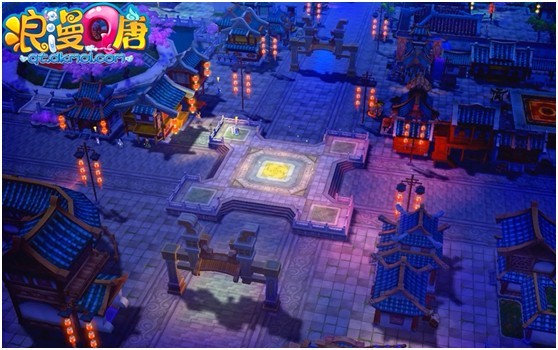(二) 唯美大唐风 古典中国风的世界、经由3D效果渲染后,形成了《浪漫Q唐》独有的风格特色,紧密结合游戏的背景剧情,营造出了一个唯美清新的大唐世界。《浪漫Q唐》首次实现了Q版游戏仿真天气变幻,完美模拟“云雪雨露霜”的天气效果,营造出最真实的游戏体验! 夜晚的太原城