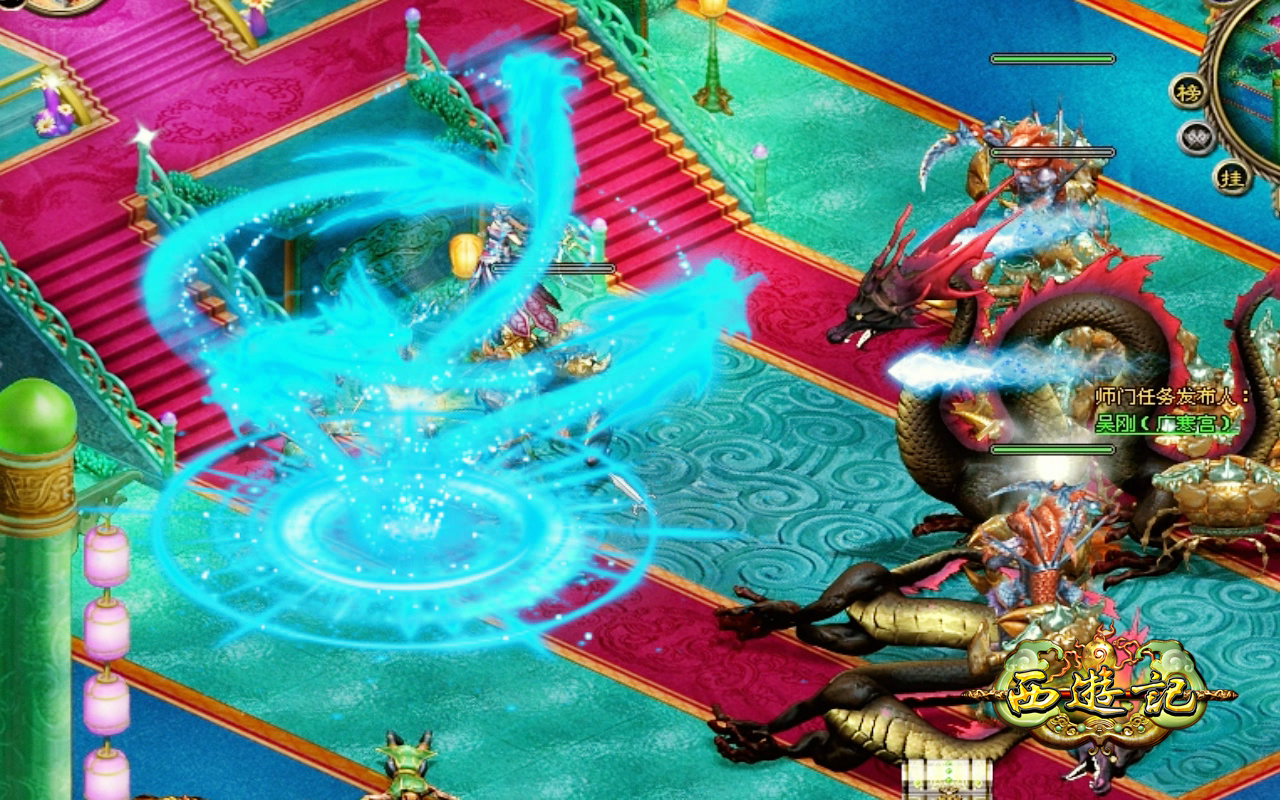 二、副本任务篇: 1.蟠桃劫任务:傲来村NPC桃山土地(坐标:38.34)副本开放时间为11:30 - 13:30 19:30 - 21:30。大家做这个任务的时候呢,最好是开3倍经验,系统送的那里领30分双,再吃个100%的如意丹,这样经验非常高。 2.闹龙宫任务:傲来村NPC灞波奔儿(坐标:164.127)每天2次。随时可以去,是打非绑定金的副本,很简单,只要是组和自己级别差不多的玩家。只要别打精英级别的,都可以过。 大闹龙宫
