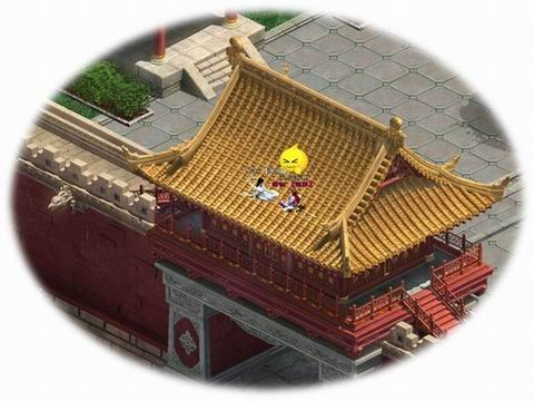 第五站:王城宫殿 《征途2》中的王城宫殿可是堪比故宫的景观,如此恢弘大气的建筑,怎能不去观赏一番?走上活灵活现的雕龙阶梯,便可看到王宫宫殿,高仿真的制作让每一片瓦片都清晰可见,不信你可以运用轻功,飞上宫殿屋顶仔细欣赏一番。 轻功飞殿顶 |