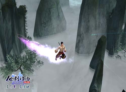 纯正中国风——画面篇 《仙剑神曲OL》也致力于最纯正中国风网游的打造。在《仙剑神曲OL》的世界里,无论是建筑、场景,人物的服饰、武器等等的制作风格,均与现存古代史料进行了详细的考证和对比,最后经过一定的美化而制作完成。比如,中国古代建筑大多采用砖瓦结构,由木柱、木梁搭建来承托层面屋顶,而屋顶出檐并向上仰翻的弧形造型,展示出独特的形态之美,除此之外还非常重视装饰和雕梁画栋、彩绘等等,这些在《仙剑神曲OL》建筑中都将得以一一体现! 中国独有的御剑飞行