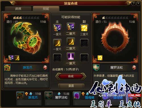 全新技能合成法宝 四、法宝特性不靠天生 技能合成巧夺天工 谁说【翻天印】就只能攻击?谁说【天魔令】就只会防御?《仙剑神曲OL》新版技能合成法宝,让你的法宝真正成为能攻能守的多面手!【屠罗法轮】、【琉璃心】、【风雷锥】三大合成法宝各具特色,为你的法宝注入全新的活力!玩转全新法宝,畅享秒杀乐趣,尽在新版《仙剑神曲OL》 |