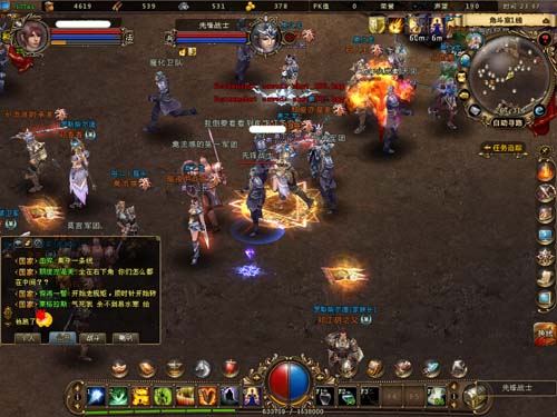 每天活动开放之际,三大帝国的玩家可以同时进入角斗室。角斗室里有高额的经验奖励,必爆极品装备的BOSS。为了能独享这些资源,三大帝国之间的战斗就不可避免了,每天一次的角斗室就是一场小型的国战! 15级进入,提前享受国战乐趣 不需要超高的等级,不需要超强的装备,在《猎国》里,只要你想体验国战的乐趣,15级就能感受到西方三国大战的火爆场面。