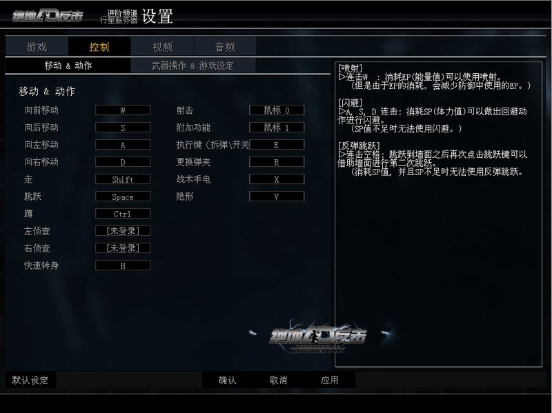 《绝地反击》的操作设置 动作系统的对比,两款游戏的操作要求 正由于《反恐精英ol》传承了反恐精英系列或者说是市面上大多数FPS游戏的大多数特点,所以在其动作系统上仍然沿用了绝大多数FPS游戏的动作系统,并无太多的自身特色。 《绝地反击》是一款由雷神之锤原创团队加入而开发出的全球FPS网游,其整体的游戏系统都属于全新的搭建,并加入了众多的自身创意。从动作上来看,除却与其他FPS游戏基本相同的基础按键,还加入了众多的新战术动作。在技能系统的支撑下,突击兵连按两次W键便能实现喷射,狙击兵按下V键便能实现隐身;连按两次空格键便能实现两次跳跃,让角色跳跃攀登的高度突破传统的极限,H键能让角色实现瞬间转身,以及相对应需要手动设置的左侦查、右侦查键等等。 |