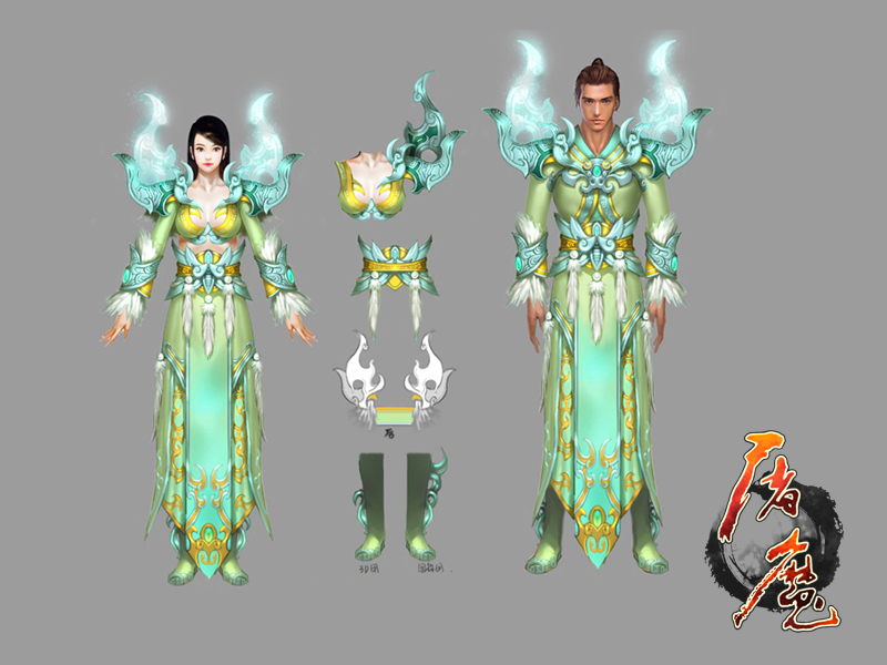 冯MM坦言,凭空设计若干套风格不一的装备并不难,但若考虑到游戏本身的氛围、受众的接受程度以及装备的多样性就不那么容易了。但是还好,经过多次修改之后,终于创造出了令人满意的成品。 “原画设定2”