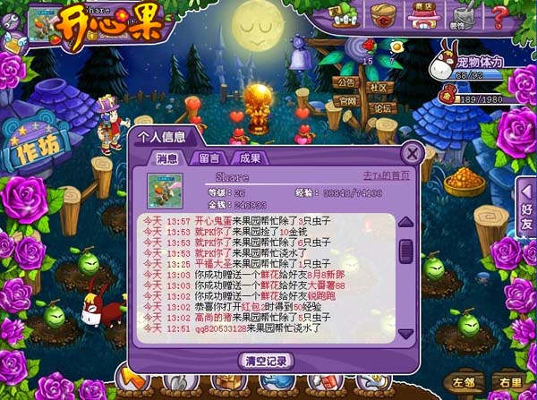 午休前的友谊互动 午休时间到了,吃完午饭赶紧登录《开心果》,整理一下拥挤的仓库。打开作坊,点击加工,把水果们都加工成橙汁、化肥、鲜花、鸡蛋……休闲一下!再逛一圈朋友们的果园,顺便把鲜花和鸡蛋都送出去!给我喜欢的她送朵鲜花,给昨天偷了我水果的他砸个鸡蛋,警告一下!最后再给自己的水果施施肥,拔拔草。好了,打理好果园要放心午休了! 送朵鲜花,砸个鸡蛋 晚饭后的学习时间 下班回到家,吃完饭后打理下自己的《开心果》果园,顺便再偷点水果充实下自己的仓库。对了,好像最近《开心果》又出了不少新道具,赶快去《开心果》官网论坛上去了解一下吧!在论坛里,可以和其他的玩家进行互动,提出的各种疑问和建议,也总能得到GM或者热心玩家的真诚解答和回复,让我有更多的知识打理好我的私家果园! 《开心果》让我们从忙碌焦虑的心情中挣脱出来,舒缓紧张的情绪;也让我们在忙碌的工作间隔中体验到田园生活的快乐,享受到做一个农场主的快乐!赶快来《开心果》里感受一下吧! 关于《开心果》: 《开心果》是国内第一款桌面社交游戏,是由火石软件自主研发的一款Q版风格的,2D类型休闲游戏,拥有超精美画面,超可爱水果和免费模式。超小客户端,一分钟内完成下载。赶紧带上您的好朋友,每天5分钟,无负担享受开心体验! 最受玩家肯定的四大玩法包括:偷菜捡钱、爆笑宠物、个性水果、魔幻作坊。在《开心果》里面,每一个水果和宠物,都能让您充满惊喜、爱不释手。 7月15日,《开心果》全新作坊系统开启测试,敬请体验更多精彩! [编辑:糖糖] |