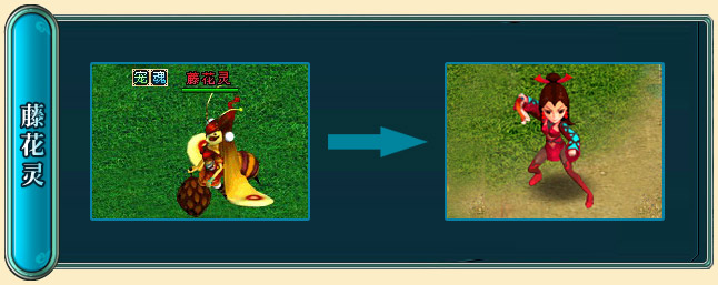 既然你诚心诚意的请教了! 我就大发慈悲的告诉你! 为了防止世界被破坏! 为了守护世界的和平! 贯彻爱与真实的邪恶! 可爱又迷人的反派角色! 武藏! 小次郎! 我们是穿梭在银河的火箭队(二人组)! 白洞!白色的明天在等著我们! 喵~就是这样! 相信大家对上面这段台词都比较熟悉吧,没错,这就是动画片《神奇宝贝》的经典台词,是不是有仿佛回到儿时的感觉?唤醒你的童心,跟随蓬莱的脚步,一起走进宠物的幻灵系统,一起玩转宠物变身术,宠物变身轻松实现。 当玩家的变异宠修为等级达到8级后,可以找指定的NPC东莱洲【饲宠居老板】妙妙进行【宠物幻灵】操作,宠物会寄放在NPC处,一个小时之后您与NPC对话来领回已幻灵的宠物。幻灵后的宠物可以设置出战状态:以原形出战或者以人形出战,需要设置请找NPC妙妙。幻灵后呢,你的小宝贝不仅拥有全新可爱的外观,其属性能力也大大增加,作为你游戏闯荡江湖的好帮手也就更加称职了。下面就来曝光一下《蓬莱》其中的一些变身宠吧! 藤花灵