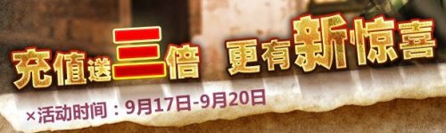 中华网游戏集团(CDC Games)旗下FPS经典网游《特种部队》中,现在参加“充值送三倍”活动就能获得白金AK、黄金M4极品枪支以及各种超值道具。并且,还有机会成为幸运之星,获得珍藏版黄金Berettam92f,机会不容错过,惊喜不容错过,赶快来参加吧!