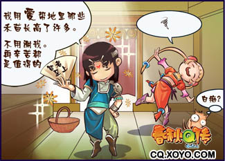 帮禾苗“长高”后,他很自豪的跟翠花说:“我用爱(当然是对你的爱了)帮地里那些禾苗长高了许多 ,不用谢我,(为了你)再辛苦都是值得的。”翠花听了他说的话,一阵眩晕,连小Q仔听到了都要禁不住的想要骂他一句“白痴”。 |