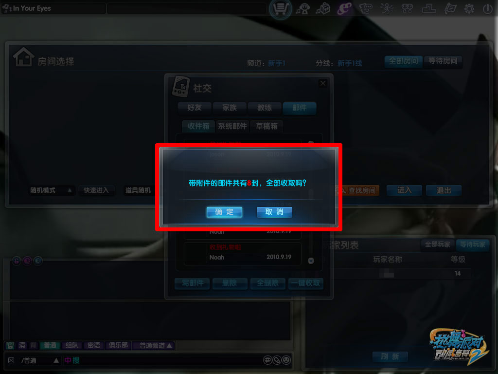 点击确定 畅快收取 其实,自从《热舞派对Ⅱ》全新版本“动感音符”正式上线以来,就新增了贴心的“邮件附件一键收取”小功能。玩家只需要在邮件界面,点击“一键收取”,即可以瞬间收取所有邮件中的附件物品啦! |