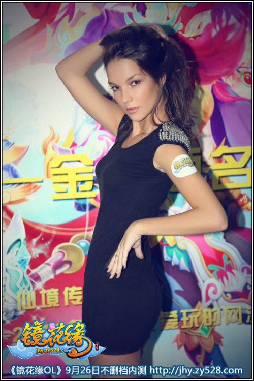 现场惊现褐发褐眼异国MM 在接近下午三点半的时候,现场所有人的视线又被一位迟到的褐发褐眼、高挑的异国美女吸引住,她身着紧身黑色连衣短裙,颇有名模MaggieQ的味道。她的中文非常流利,她说:我从《镜花缘OL》封测就开始玩了,非常喜欢它可爱的画面,前几日在官网上看到了“百花仙子”的这个活动,我觉得这是一个做自己喜欢游戏代言人的机会,一个不容错过的机会,于是就过来参加比赛了,我很自信,我觉得我能获得最后的冠军。 褐发褐眼的异国美女玩家 褐发褐眼的异国美女玩家