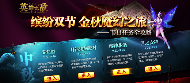 而灯神可不是那么好找的,每晚的22:00——23:00,灯神都会变出十个分身在翡翠城,在回答完一个猜谜灯神的题目以后,便可继续找另一个分身答题。正确回答灯神提出的问题,你将获得中秋特色礼包,其中包括经验球、藏宝图、幻光泉水、限时武器外套或大量金钱奖励。 魔法月饼