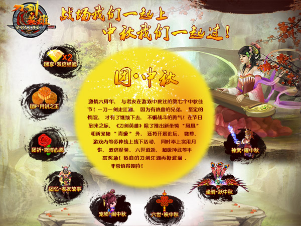 同在战场出生入死,昔日的手足立下海誓山盟,六年光景彷如昨日……有一些东西留存记忆,永远不会抹去。特别的团圆夜,《刀剑英雄》并肩作战六年的兄弟们迎来了第七个中秋佳节,在此,《刀剑英雄》祝大家中秋节快乐! 战场一起上,中秋一起过 依稀听到号角响起,尘封的记忆被唤醒,你的兄弟与爱人等着你重归战场!回首过去的六年,点滴事迹在脑海中呈现,共同征战的战役、共同定下的誓言、共同制定的目标……这一切仿佛都发生在昨日,而今天,让我们再次团聚,为我们的友情干杯,为我们的情义高喊:兄弟,有你真好! 从公测开始,回顾这六年的历程,与大家相伴的日日夜夜里,时间留住了属于我们的经典,我们共同演绎了无数的精彩和美丽的瞬间。所有的点点滴滴,都离不开彼此的一路相伴。我们在《刀剑英雄》这个世界里演绎着多彩的人生:结交知己、收获姻缘,同时肩负着帮派与守护楚天都的荣誉使命,以及无时无刻的奋战杀敌。 在这个特殊的节日,我们邀请你来与我们共度这第七年的中秋佳节,没有一种情义如此深厚,没有一种兄弟情如此默契,一路走来,我们只有欢喜没有悲伤,因为我们从来没有分开过,正如去年说的,明年一起过中秋。那么今天,让我们一起喊出心声:祝大家中秋快乐! 今朝兄弟相伴,此生无怨无悔,不分彼此,从此并肩征战!《刀剑英雄》让我们激爽格斗! [编辑:灰色] |
