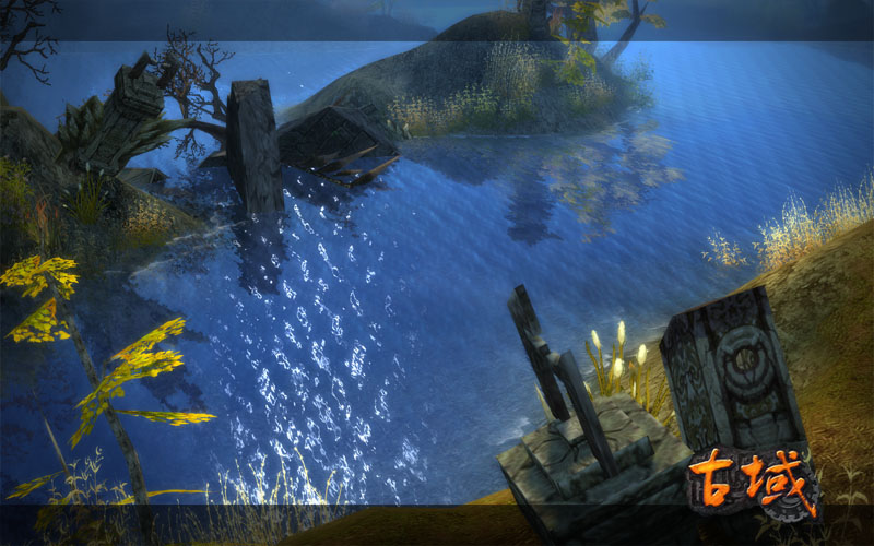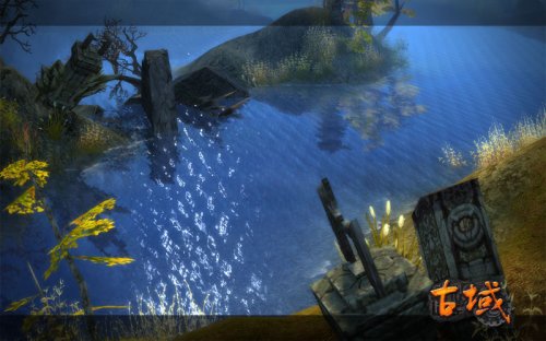 为什么要关注水体表现效果?对于一款采用3D引擎的网络游戏,游戏画面中的各种水体表现,无疑是最能反映游戏研发团队实力与诚意的地方。继《古域》引擎研发揭秘之后,我们再一次为大家带来了这款穿越题材网游大量表现水面的实际场景截图。 质感、渲染,《古域》于无声处展惊艳 《古域》中被洪水漫过的废墟
