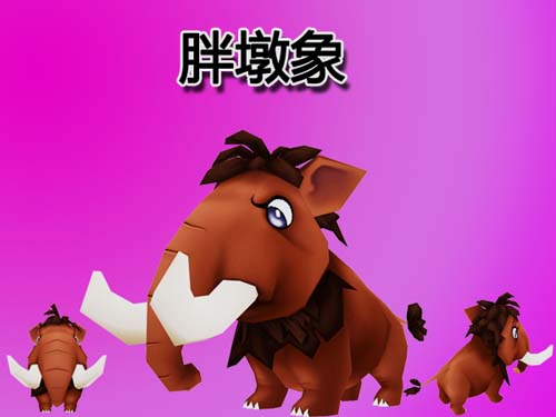 ◆胖墩象,最胖最肥的座骑◆ 傻傻胖墩象 长长的鼻子,洁白的象牙,大大的耳朵,胖嘟嘟的身体,这就是胖墩象。传说,它是史前一万年前被评为头最大的猛犸象。 性别:雄性 性格:憨厚、勇猛 年龄:10000 爱好:载着主人一起遨游到梦想大陆的每一个角落,欣赏每一片靓丽的风光美景。 骑乘速度:移动速度增加160%