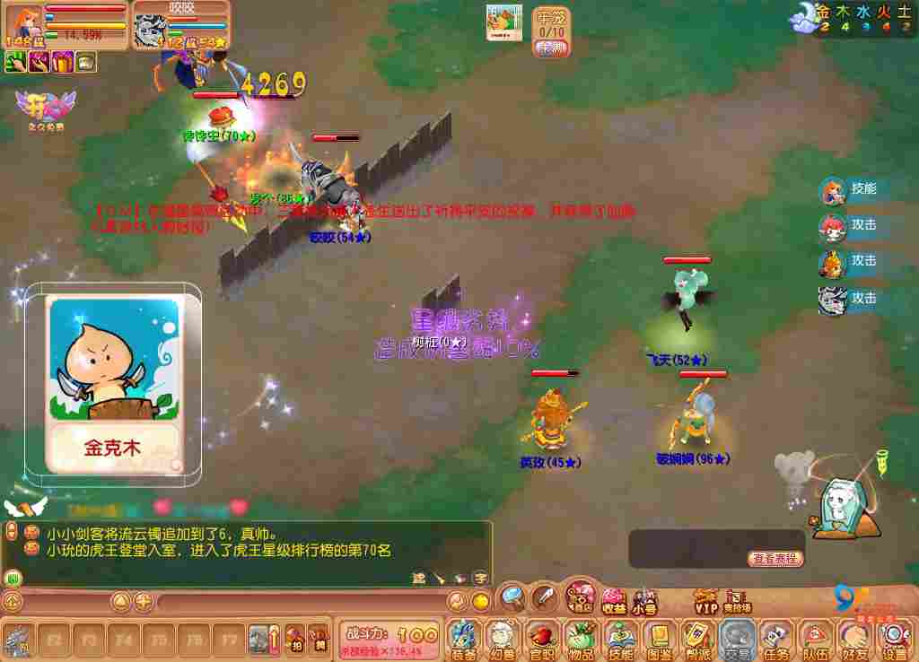 《开心》第四届蛋宠争霸赛火热进行中,洛克洛克强悍登场,为Q版花花世界再添时尚风采!哪些幻兽能够名列2010年《开心》最骁勇善战宠物排行榜,且听我一一解析! 虎王 年兽的风采 今年是虎年,虎王自然是人手一只。作为第二届蛋宠争霸赛的主角,虎王自出生开始就获得强大的技能天赋。“年兽”特征引领《开心》时尚潮流,用无等级限制给广大玩家打开一扇全新的门,同时也给180以内的级别的PK赛打造了众多新悬念和新亮点。“灵虎破甲”技能无视防御状态,赋予现今武仙大会无限新玩法,打破血宠用防御来维护生命的传统理念,开创攻击王道的新PK时代! 虎王破甲一击