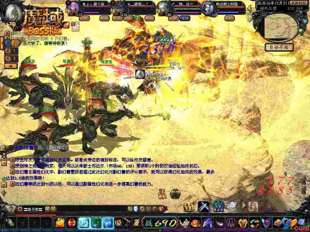 游戏中发财的机会 要发财,自然要有远远超过支出的收入,而在游戏里这个收入的大头往往来自于BOSS!在《魔域》BOSS版中,增加了四张层次性地图,每张地图增加了三个BOSS,同时,BOSS的刷新时间同样定为半小时一次,也就是说,这些会掉落经验值球、灵魂、XO型蛋、O蛋、初级法宝等等宝贝的BOSS,一天将会增加五百多个!只要你有心,自然就会有收获。 竞争是残酷的