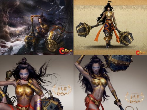 程咬金素来是个气焰嚣张的大力士,原画中的他虽形象乖张但有些“老顽童”;“美女名将”则为他增添了一抹女性的不驯傲气;插画中战火连天的背景元素则将他的男儿气概烘托得气势十足,这才是“骁勇善战、屡立战功”的凌烟阁二十四功臣。