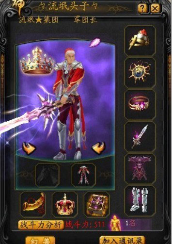木秀于林风摧之,第一人之悲 在《魔域》里PK,是喜欢热闹,高战玩家不可错失的活动,特别是在军团战中,是服务器里参与人数最多群体性PK,而在之前,名人堂第一人“々流氓头子々”是这个军团战争中的常客。 然而,也许正应了那句老话——木秀于林,风必摧之。名声在外,“々流氓头子々”在军团战中往往会受到几个老对手甚至是为数众多的小号的夹攻,目的并不是杀死“々流氓头子々”,毕竟第一战的实力摆在那里!然而,这些对手采用的战术很让“々流氓头子々”无奈,只是不断的“飞”(战士单体PK技能),把“々流氓头子々”推开距离外带眩晕一下,让“々流氓头子々”难有用武之地。几个回合下来,这位藏不住的心事的第一战发狠了:以后团战我不去了! 流氓的人物界面