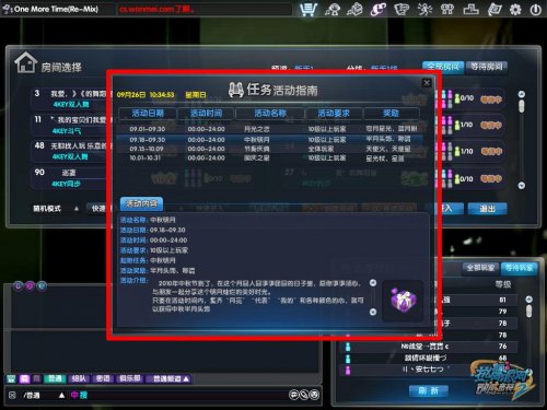 功能2:任务活动指南 任务活动指南的入口,玩家可以轻松的在任务面板左上角寻找到,单击即可进入任务活动指南的页面。在任务活动面板中,玩家可以轻松的掌握当期的所有系统任务,包括活动日期、时间、名称、参与要求和奖励。单独选中任何一个任务,还能在界面下方得到详细的活动介绍哦!有了任务活动指南,玩家们即可在游戏中随时随地查看当前可参与的活动列表,从此不会错过任何专属线上活动啦!