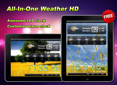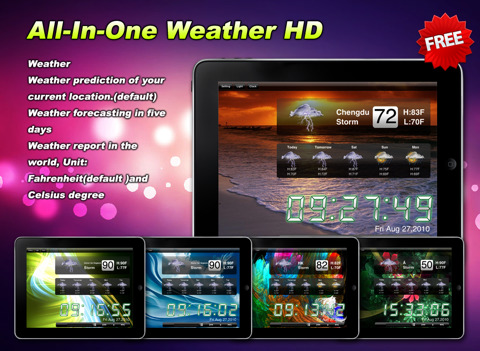 令人发狂的国庆假期终于要来了!在五一劳动节过去,便对即将来临的国庆长假念念不忘哇(相距将近半年...),盼星星盼月亮,终于盼来了,而与此同时,跨世代机器iPad也公开发售了,好事总是一起的来,内牛满面啊~~~而作为苹果系列中的大哥大,飞机中的战斗机,那性能还真不是盖的,而我们也很幸运,能以最快的速度拿下这台“战斗机”,好了不废话,妈妈常教咱们说好东西要大家一起分享,而借国庆长假,我们任玩堂也不吝啬,特向大家推荐5款非常棒的iPad应用及游戏。 出门时乌云密布,返家途中狂风怒号?不必担心,第一款向您推荐的iPad应用,让您轻松应对复杂多变的气象变化,iPad综合气象预报:《All-In-One Weather HD》 手指轻触所在地点,早上、中午、傍晚以及在五天内的昼夜详细气象预测将展现在您面前,还内置9种预警器和自设闹钟,自定义重复周期等功能,轻松应对即将来临的各类恶劣天气,推荐! |