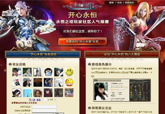 开心永恒玩家社区是一个交友拓展的优秀平台,你可以通过社区认识到更多各个服务器的永恒玩家们,观看他们的心路历程,感受那些你在游戏中未曾遇到过的新鲜趣事。社区上传照片功能让你在分享自己照片的同时,更加了解游戏里那些生死之交现实当中的一面。这里就是永恒之塔的一个大家庭,闲暇之时到这个社区交流经验,放松心情,还有更有许多有趣互动活动等你参加,丰厚大礼等你领取。