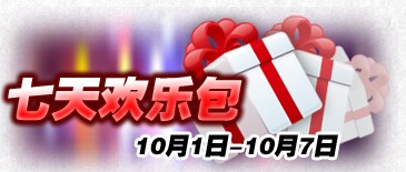 活动时间:活动时间:10月1日-10月7日 活动一:【⑦天欢乐包】 活动介绍: 十一长假我们为广大玩家精心准备了7天欢乐包,只需3800GT就可获得黄金M4(7天)、黄金AK(7天)、龙纹PSG(7天)、恶魔突袭者(7天)、恶魔UZI(7天)、黄金手雷(7天)、超级房主(7天),如此丰厚的大礼包,还在犹豫什么?马上参与将宝贝收入囊中吧!