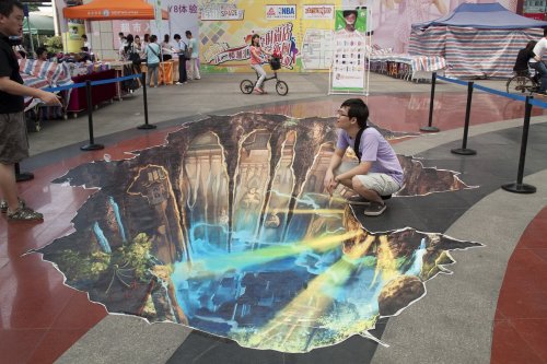 9月28日,《天下贰》正式推出年度大型资料片“幻龙诀”,网游首创“幻化合体”全新玩法,“3D大场面,就玩天下贰”。而9月29日,《天下贰》开启了全国高校3D体验季活动,伴随着大型COSPLAY和路演活动,《天下贰》主题的3D立体地画、加长悍马3D体验馆陆续开进校园,引发了高校中3D体验的热潮。 3D立体地画进入校园 相信许多同学都在网上看过国外达人玩3D立体地画的图片,有没有想过自己也亲自看到这些好玩的画面?看下图那个同学蹲在悬崖边上的感觉。